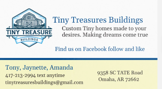 Welcome to Tiny Treasures Buildings, where your custom building dreams come to life. Discover our passion for creating unique spaces, from cozy tiny homes to functional custom retreats. We're committed to quality, tailored design, and exceptional service. Let's build something extraordinary together.