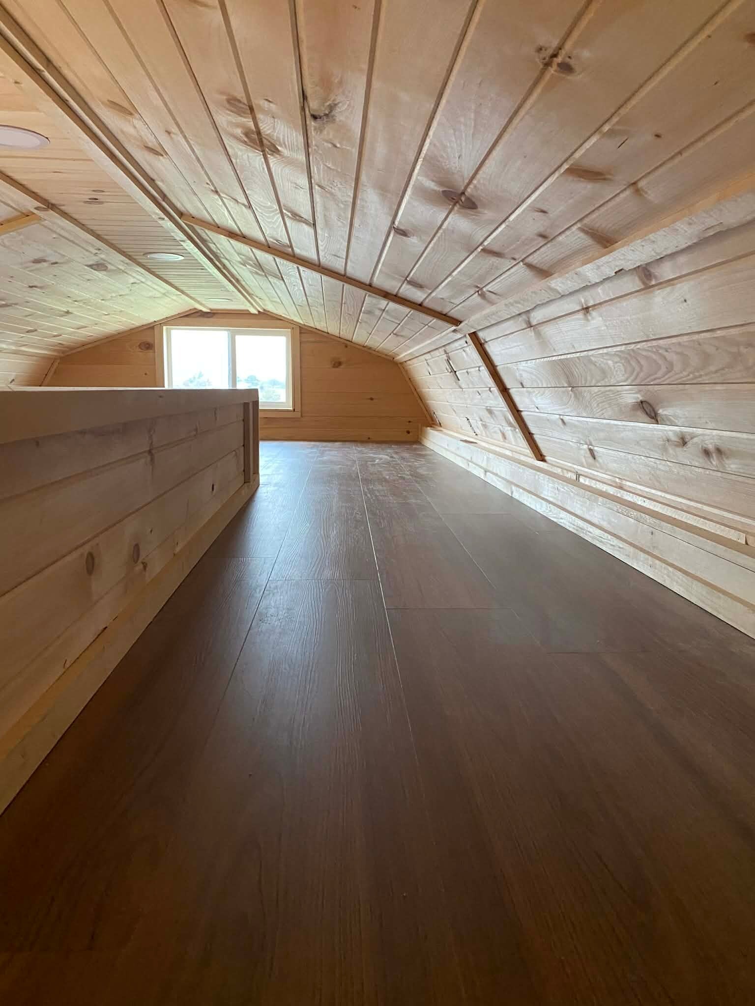 This is a custom lofted barn style starting at $54999 but can be upgraded or down graded to meet your needs. Mr. Cool mini split system, spray foam insulation, walk in shower and luxury vinyl plank are just a few of the standard in all our homes. Colors are chosen during design stage when we sit down with you and draw them out. Each home is different.