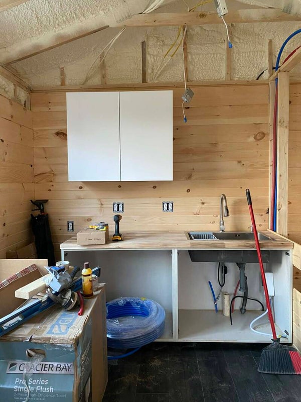 Check out this amazing 12x24 home office/art craft room, featuring a Mr. Cool mini split for perfect climate control! It also includes a convenient half bath and a kitchenette, which has a wall of cabinets ideal for storage or for getting creative with arts and crafts. This space is designed for both productivity and fun!